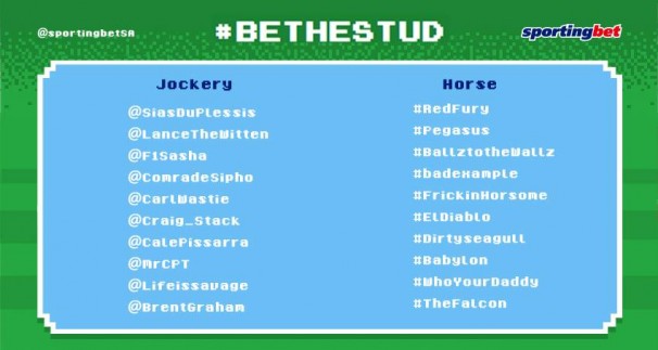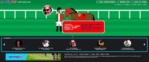 The personalities will need to get their followers to tweet & retweet their horse’s #Name and #BeTheStud; each time this is done their horse will move forward towards the number of mentions they need to win the race.