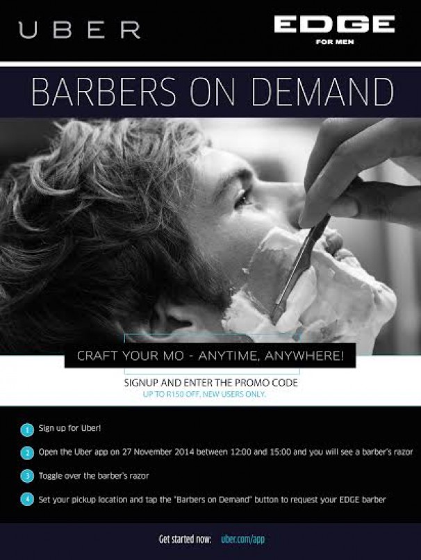 Male riders in Cape Town will be able to open the Uber app and request a Barber on Demand, just like you would normally request a car. The EDGE barbers will come to you, wherever you are – at home, the office, the sports field, or even on the pavement – it’s up to you.
