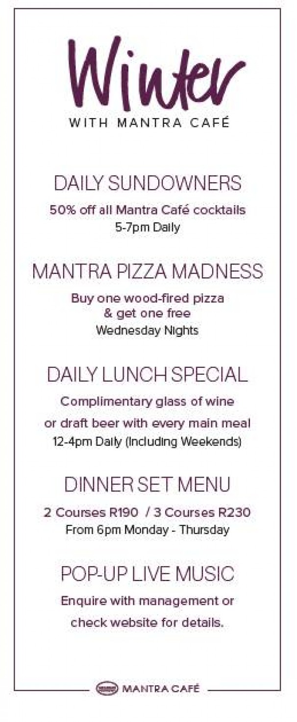 Follow me on Twitter @MrCPT and become a fan on Facebook at www.facebook.com/mrcapetownblog for all you need to know about the newest restaurants, latest specials, restaurant reviews, competitions and more. Your mother city wingman!