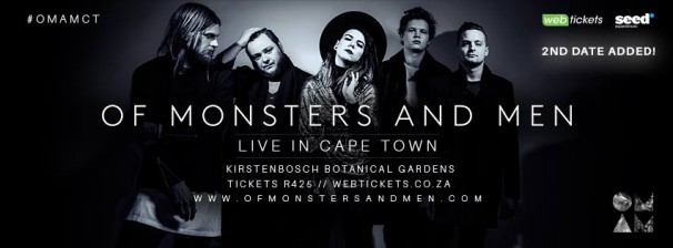 Tickets to Of Monsters And Men Live In Cape Town, happening at Kirstenbosch Botanical Gardens on Wednesday 30 March, are sold out! Avoid disappointment and make sure that you don’t miss the opportunity to see this world-renowned band rock our South African stages as they announced a second show! The second LIVE performance will take place the very next day, being Thursday 31 March, 2016. Click [here] to get your hands on tickets to the second show that will take place in Cape Town! Or carry on reading to see how to WIN a set of DBL tickets to their SOLD OUT show in Cape Town on 30 March 2016 on my blog.
