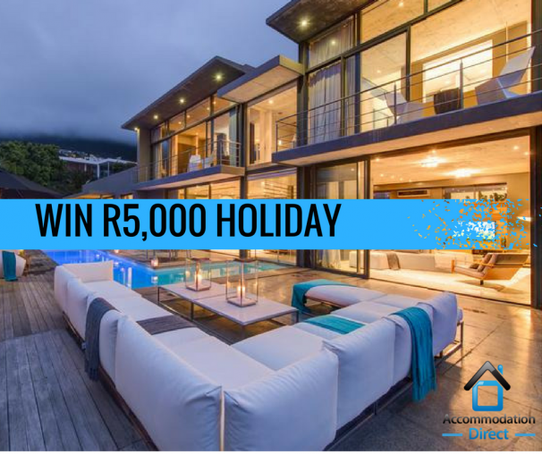 The prize is R5000 toward an accommodation booking made on AccommoDirect.com and does not include transport or meals not specified.