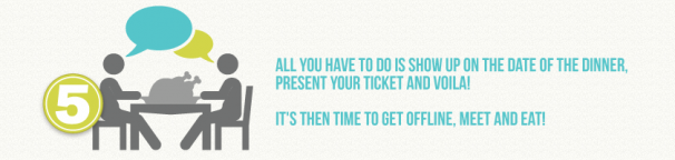 Check out the new Dine With Us website [here] and have a browse around. It’s a pretty user friendly site and explains everything you need to know. I dig the fact that you can see the pictures and profiles of the people who have already booked for the experience. From my point of view you can check if there are any hotties, or, maybe someone you might not get along with 😉