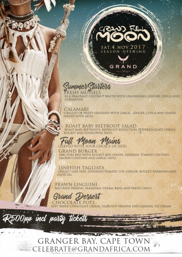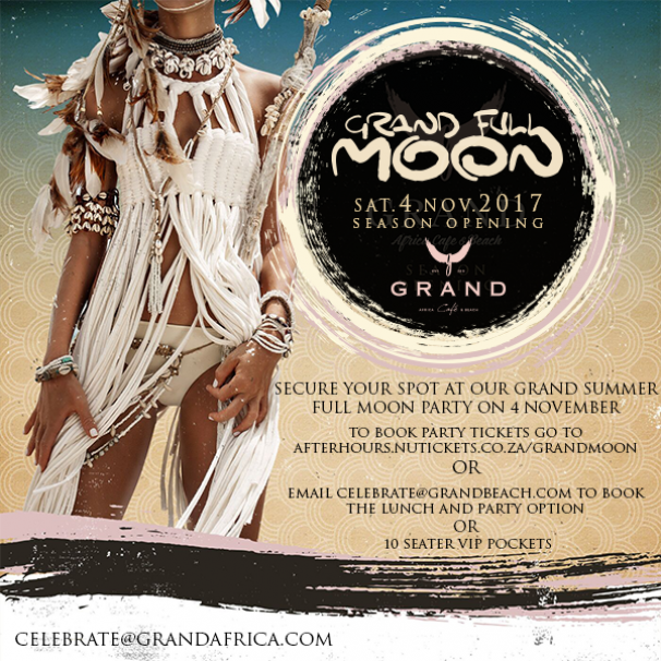 Early bird tickets are now available through Nutickets. There are limited tables available at R500 per person. This will include a summer set menu and entry to the Full Moon party. Email celebrate@grandafrica.com for table bookings. Head over to the event on Facebook [here] to click going, and see more about the vibe!