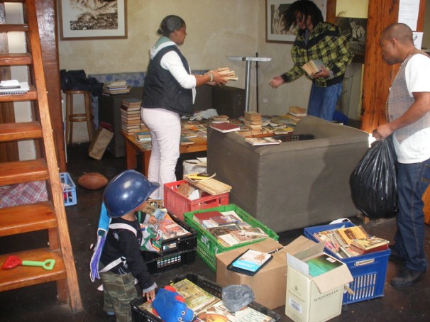 The MyLife team are busy sifting through books and clothes that have been donated to the project today. As I can imagine it must be chaos with the amount of stuff they have been given. Linzi and Sifiso look hard at work, keep it up guys! They even have a little helper with his hard hat and what seems like a newly donated bag on his back, hopefully to fill up with some educational books 😉