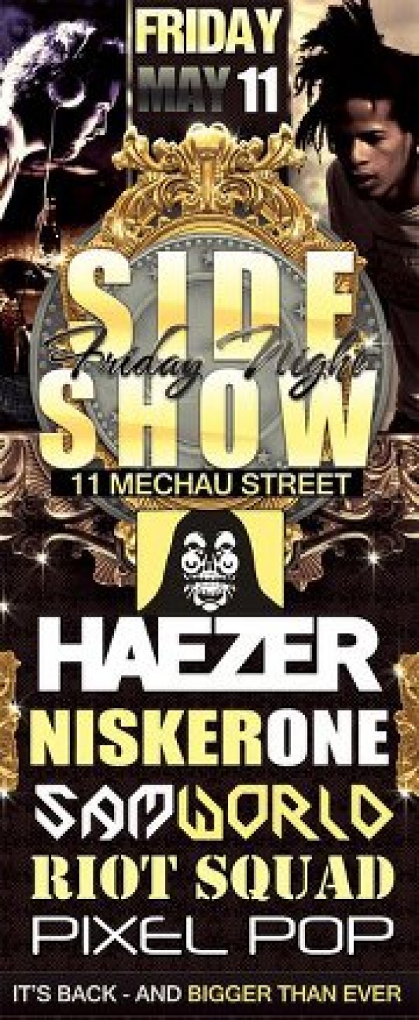 Possibly 2 of the best artists in their categories will re-open the old Fez on Friday night with some fucking filthy electronic smashers! Haezer & Niskerone (who also happen to be 2 of my favourites) will be alongside Riot Squad, Sam World and prominent youngster Pixel Pop… The venue has been taken over by Abby Chapel (the man responsible for the rise of Dragon Room and the old Fez Friday’s), re-named The Side Show and will host some top electronic names over the next few months!