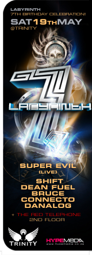 In just 7 short years Labyrinth has played host to many of the biggest international artists and proudly watched as the careers of local artists have flourished overseas. With the popularity of psy trance catapulting in the last three years, so came the decision in 2011 for Labyrinth to create a new home for itself in Cape Towns super club Trinity, and it is here that we celebrate our 7th Birthday.