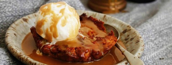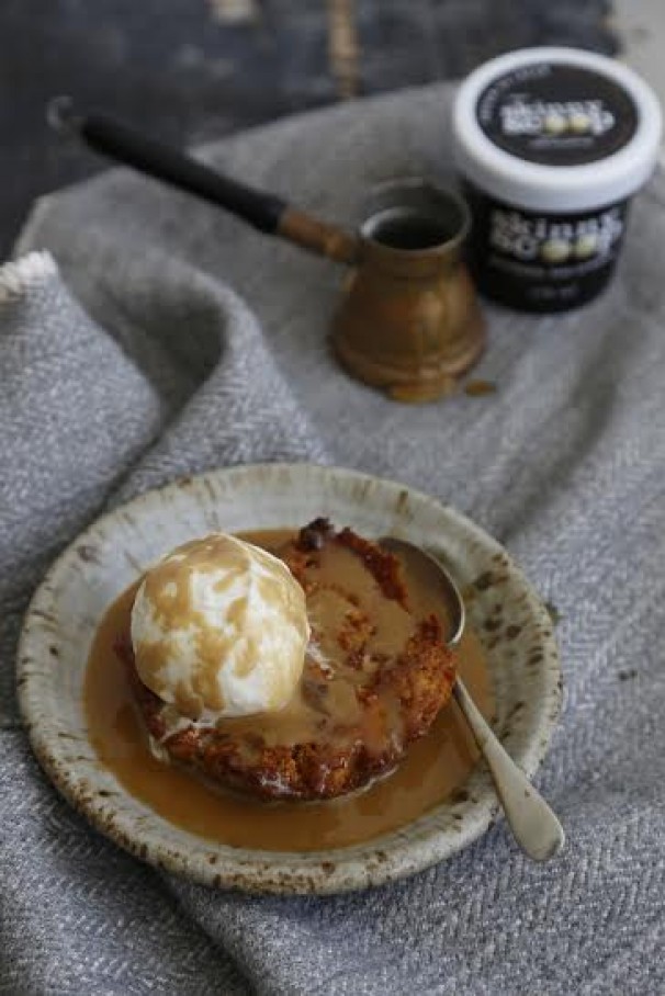 Banana Pudding! Served with Vanilla Camilla and a Butterscotch Sauce. Gluten and wheat free, refined sugar free.