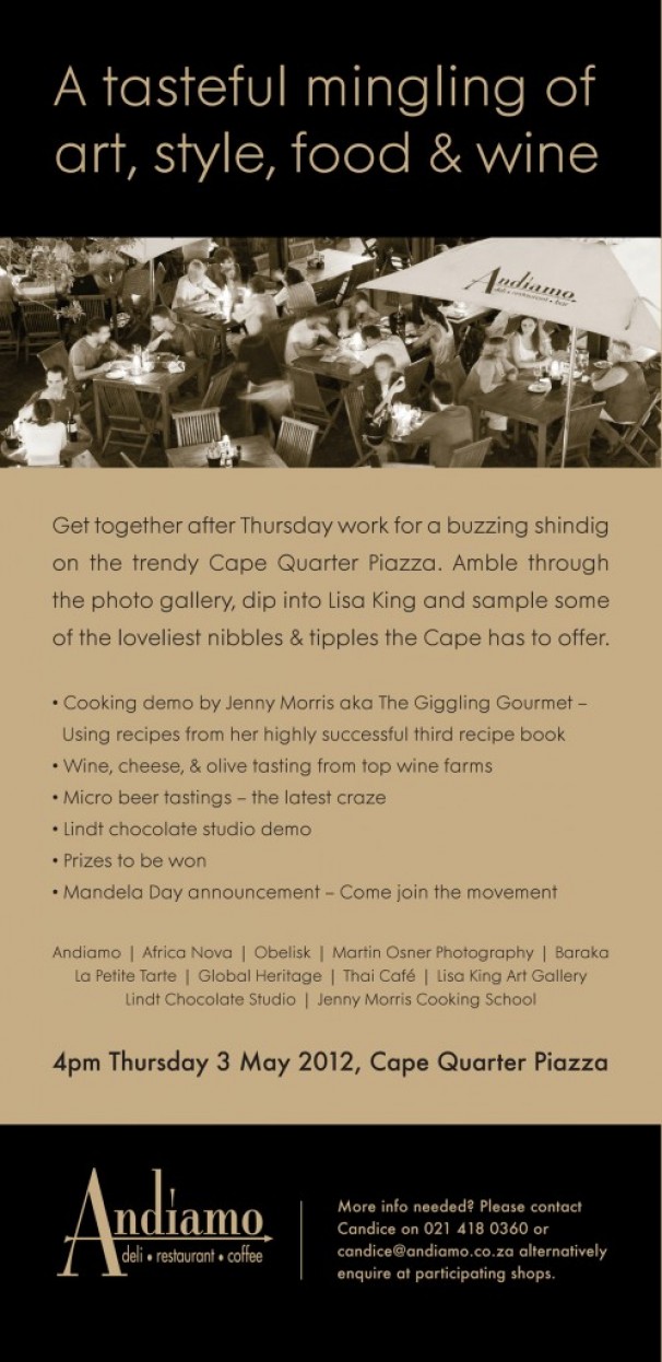 I have always been a fan of the specials and food at Andiamo and after seeing their latest special up and running again I stumbled upon this… It is basically a cool event at the Cape Quarter Piazza run by the guys from Andiamo, along with some other talented species!