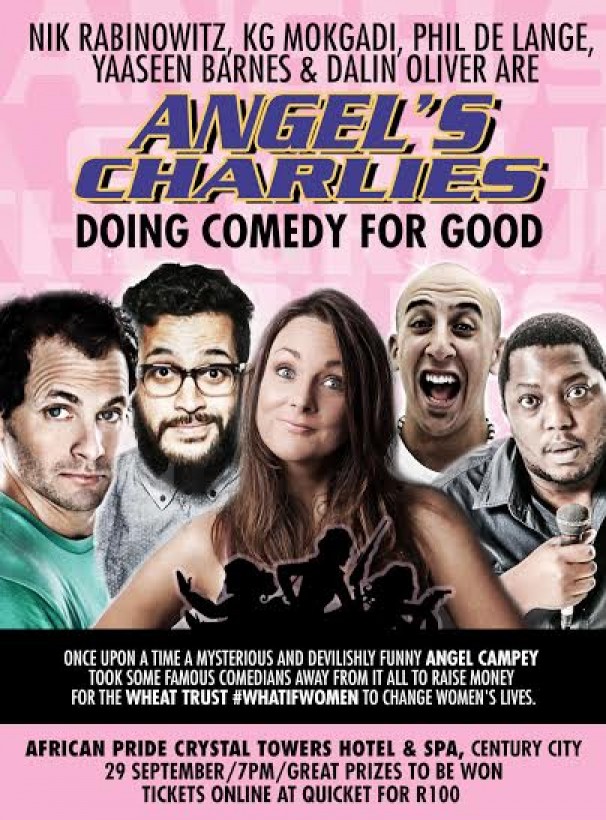 Angel has assembled a star studded line up of the who’s who and the who’s new in comedy: Nik Rabinowitz, KG Mokgadi, Dalin Oliver, Yaaseen Barnes and Phil De Lange are the Charlies. Top South African comedians, Award winning comedians and some of the brightest rising stars in South African Comedy, with styles to cater for every taste.