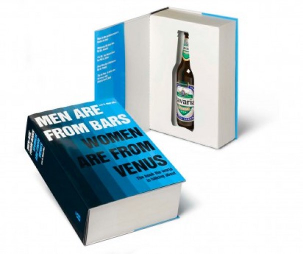 I saw this funny little advert spoof using a play on words for ultimate effect. The title from the the best selling book; Men are from Mars, Women are from Venus is altered in order to create some humour. The funny part is, when I opened the second picture which revealed the spoof, I noticed my partner in crime, Bavaria Premium Beer inside the hard cover book 🙂