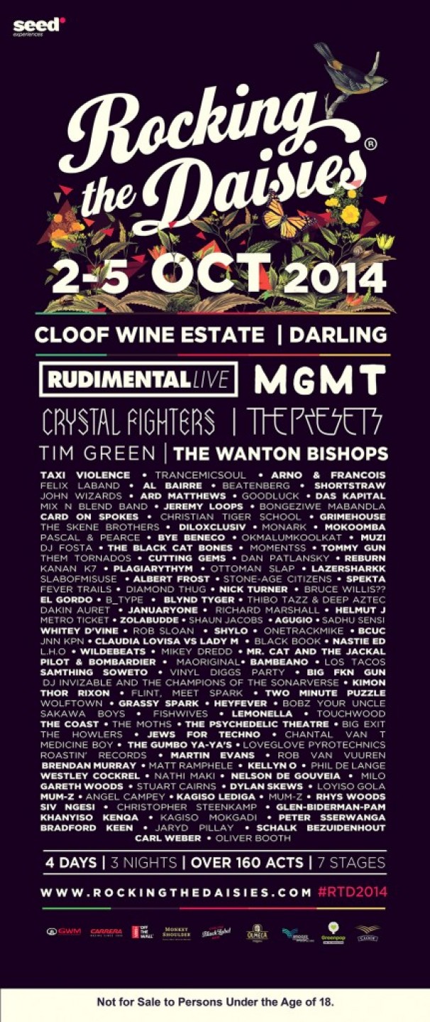 Rocking the Daisies is less than four weeks away and we’re sure you’re chomping at the bit for a four-day weekend full of long days and late nights. For this time, your entire existence will revolve around good vibes, good people and even better music! I was never really into the whole band, chilled festival vibes being an ex PSY fiend… But RTD changed all that 4 years ago, and I will never miss one again!