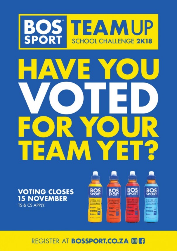 “We believe sport is the vehicle to unite and inspire youth, instilling in them the powerful values of commitment, perseverance and team work. The TEAM UP campaign has been developed to reward school sport teams who show a passion for their team and sport, no matter the results. TEAM UP and GO BOS,” says William Battersby, BOS South Africa Managing Director.