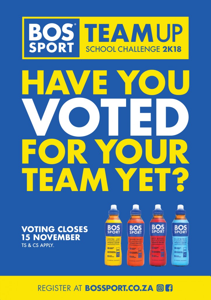 To enter your school sports team, simply log onto http://teamup.bossport.co.za, register your team name, add a profile picture, tell us a little about what makes your team great and then Go BOS! Share your team profile via social media or email and get your team and supporters to vote for your team as the BOS Sport TEAM Up winners of 2K18.