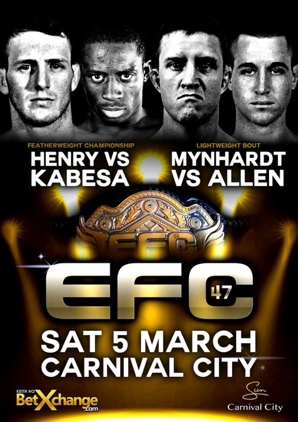 EFC 47: Mynhardt vs. Allen, Henry vs. Kabesa, presented by BetXchange.com, and takes place at Carnival City, Johannesburg, on Saturday 05 March 2015. Tickets available soon at www.computicket.com.