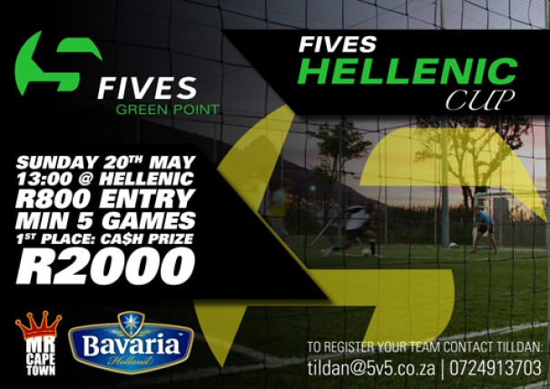 I decided to get involved and thought it would be a great opportunity for another partner of mine, Bavaria, to get involved in the social side of the game! Bavaria also currently sponsor the Camps Bay Football Club with training tops/jackets/beers/water bottles and other merchandise, so I felt it would be a cool and relevant event to get on board for them! The Fives Futbol Hellenic Cup has some awesome prizes, including R2000 cash for the winning team… Plus I would love to see if you have what it takes to beat my side as we have entered a team 😉