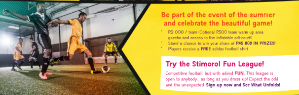 Follow the conversation on Twitter using the #StimorolFives hash tag. You can also stay in the loop by following @StimorolSA, @FivesFutbol and myself at @MrCPT. If you have any questions feel free to Tweets away football fans. For more about the event, check out the Fives Futbol website [here].