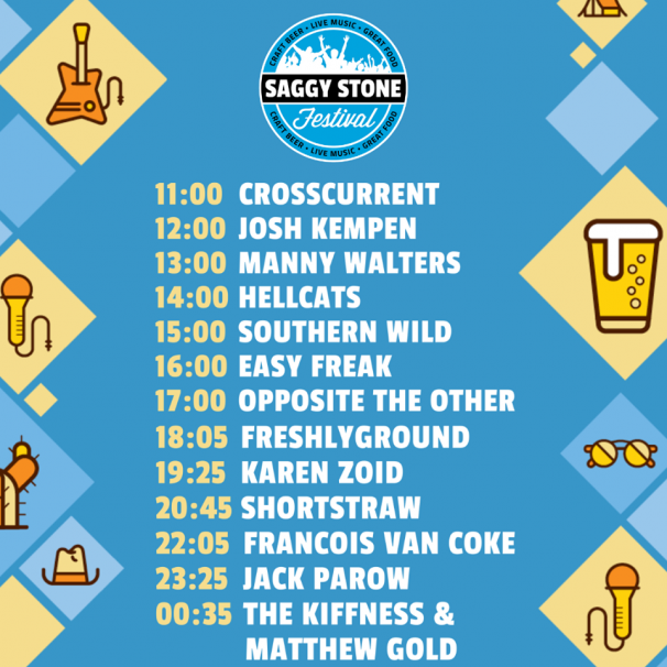 Festival goers can enjoy Saggy Stone’s great selection of core beers, as well as specialty, limited edition Brewers’ Small Batch beers. The festival will be serving a range of Amandalia spirits, including Rum and Cider, Gin and Tonic Lite and Brandy and Ginger Ale. There will be a variety of gourmet food trucks to appeal to all appetites. The Saggy Stone Beer and Music Festival is suitable for the whole family, with live music starting from 11am and ending after midnight for those who want to dance the night away!