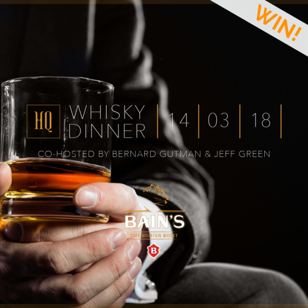 WIN a table for two at the @BainsWhisky dinner at @HQCapeTown on 14 March worth R600 with @MrCPT! Prize includes welcome drinks, aperitif, 3 course meal and full whisky pairing! bit.ly/2HuE7mK