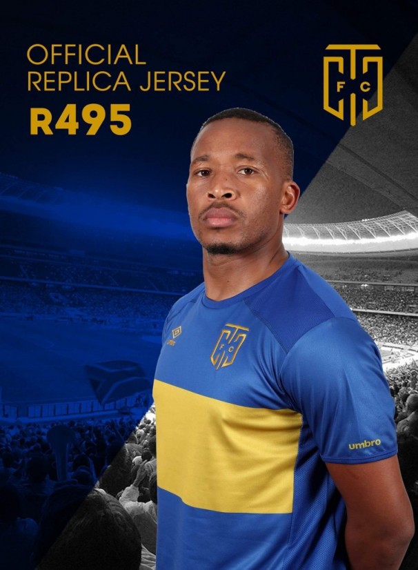 The home jersey keeps the traditional colours of the original Cape Town City, with blue being the main club colour, with the gold band across the chest and badge. The away kit is the same style, but in a black and gold colourway They retail for R495 and can be purchased at either UMBRO outlets, or at the stadium fan store on match days!